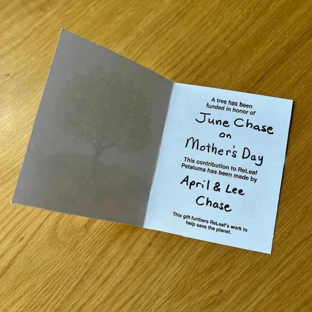 Honor a loved one, celebrate a life event, or leave a lasting legacy with a ReLeaf Petaluma Tribute Tree—a meaningful, visible tribute nestled in the beauty of Petaluma.